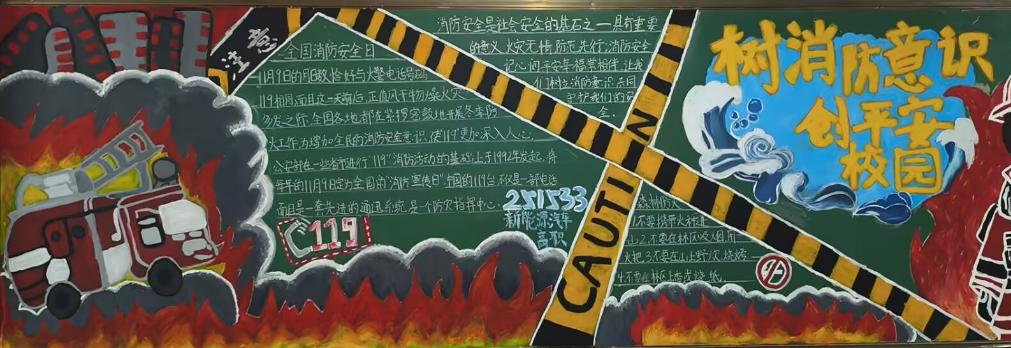 学院组织各班级以"消防安全"为主题设计黑板报,通过图文并茂的形式展示消防安全、逃生技巧及消防器材使用方法。经评比,2024级新能源汽车技术3班等6个班级获评一二三等奖。