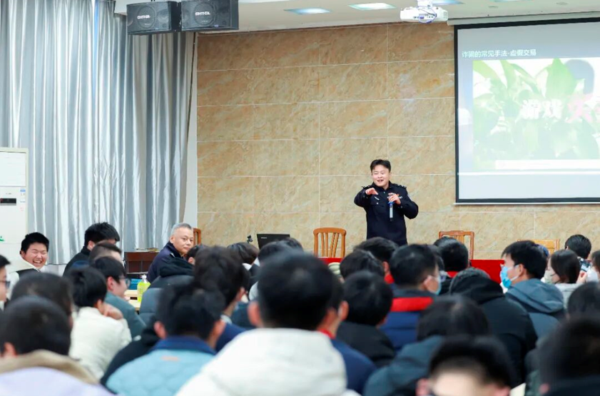 宣讲一开始,民警直击学生常见的自信心理,瞬间拉近距离。随后,课程聚焦于学生群体最易遭遇的诈骗类型:“刷单返利”“游戏账号交易” 等传统套路,以及利用 AI技术 实施诈骗的新型手段,逐一进行“技术流”拆解。