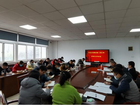 汽车工程学院郑军武院长通知介绍了学院2021年工作目标;传达印发教材等三个文件通知精神;传达2021年领航计划任务。金传琦副院长传达了开学工作的相关要求,并简要介绍了学院教学及竞赛准备工作等情况。周晓伟书记结合汽车工程学院实际情况,对2021年春季开学工作提出了几点要求,主要包括做好教室、宿舍的通风及消毒工作;环境卫生的清洁工作;安全与疫情防控工作等。