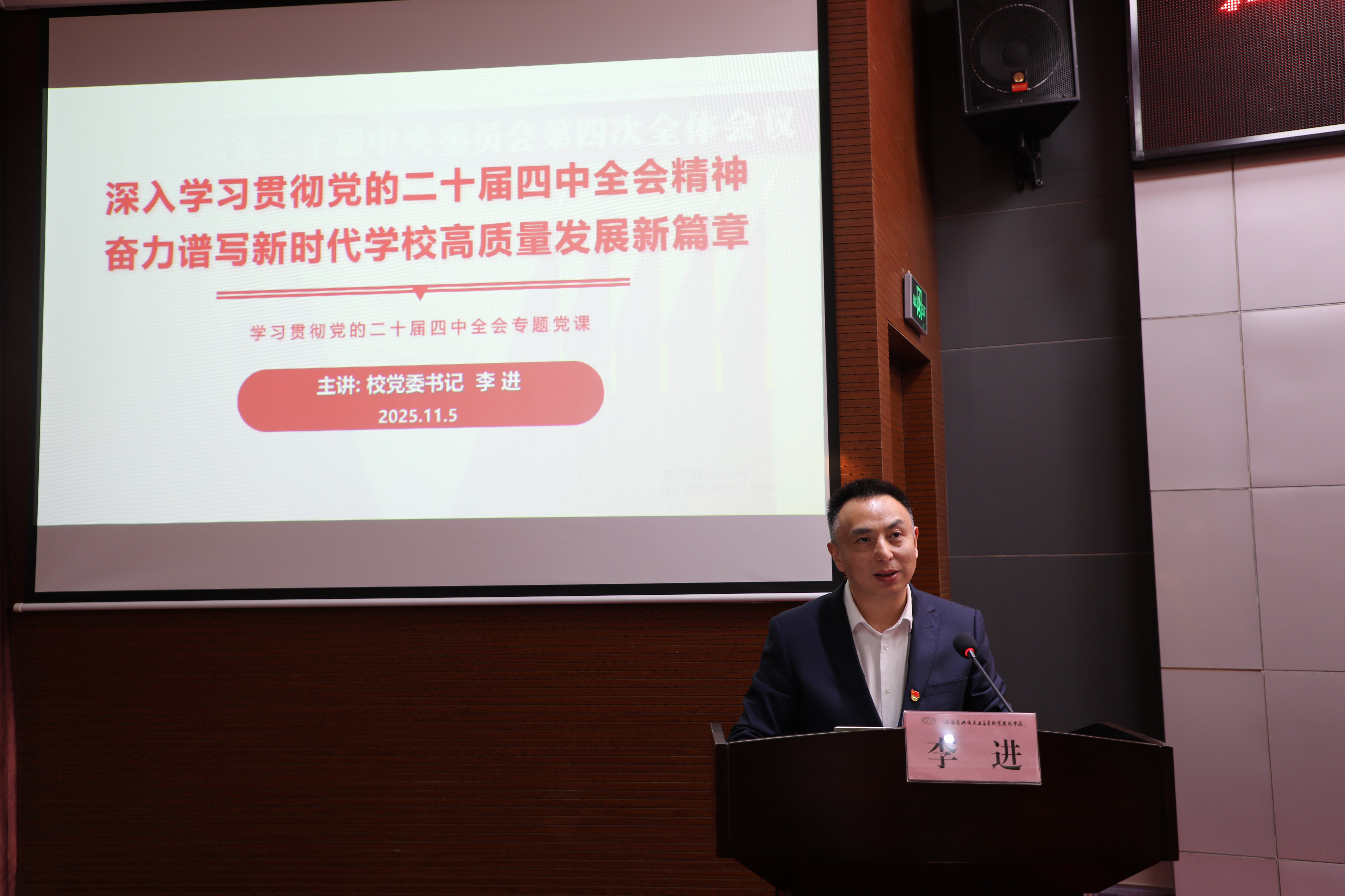 本次培训紧密结合学校党建工作实际和党务干部岗位需求,内容充实、重点突出、实用性强。培训班第一讲由党委书记李进为大家讲授《党的二十届四中全会精神》专题讲座,随后分别由理论功底深厚、实践经验丰富的知名基层党务工作专家吴仲华作《基层党组织标准化规范化建设》专题讲座、无锡市锡山区文化体育和旅游局四级调研员、党总支副书记陆顺荣作《党费收缴、使用和管理》专题讲座。